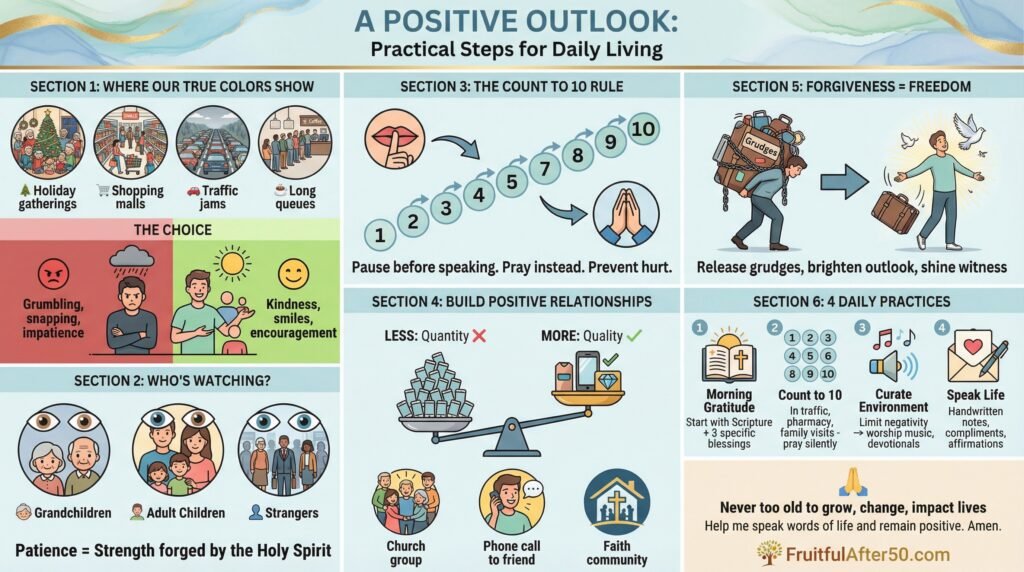 In a world that often feels hurried, chaotic, and filled with stress, maintaining a positive outlook can seem like a monumental challenge—especially as we navigate the later seasons of life. For many of us over 50, the days may bring physical limitations, health concerns, family responsibilities, or simply the weariness that comes from years of service and sacrifice. Yet, as followers of Jesus Christ, we are invited into something deeper and more transformative: a life marked by patience, grace, contentment, and the deliberate choice to speak life into others. At FruitfulAfter50.com, we believe these years can be among the most fruitful, not despite our age, but because of the wisdom, faith, and resilience God has cultivated in us.